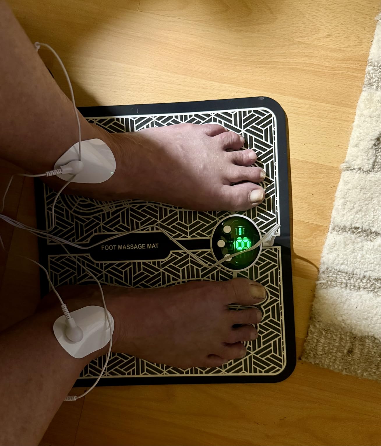 Llevo más de una semana usando este masajeador de pies EMS y estoy realmente impresionado. Es fácil de usar, ligero y tiene múltiples ajustes de intensidad que me permiten personalizar el masaje. La estimulación es muy relajante y ayuda a aliviar la tensión en los pies después de un largo día. La pantalla LCD y el control remoto lo hacen súper práctico, y ya puedo sentir la diferencia en mi neuropatía, circulación y relajación muscular. La batería de larga duración vale la pena. La calidad es excelente. Es muy efectivo para la salud y el bienestar general; ¡le doy un 10 a la funcionalidad!